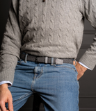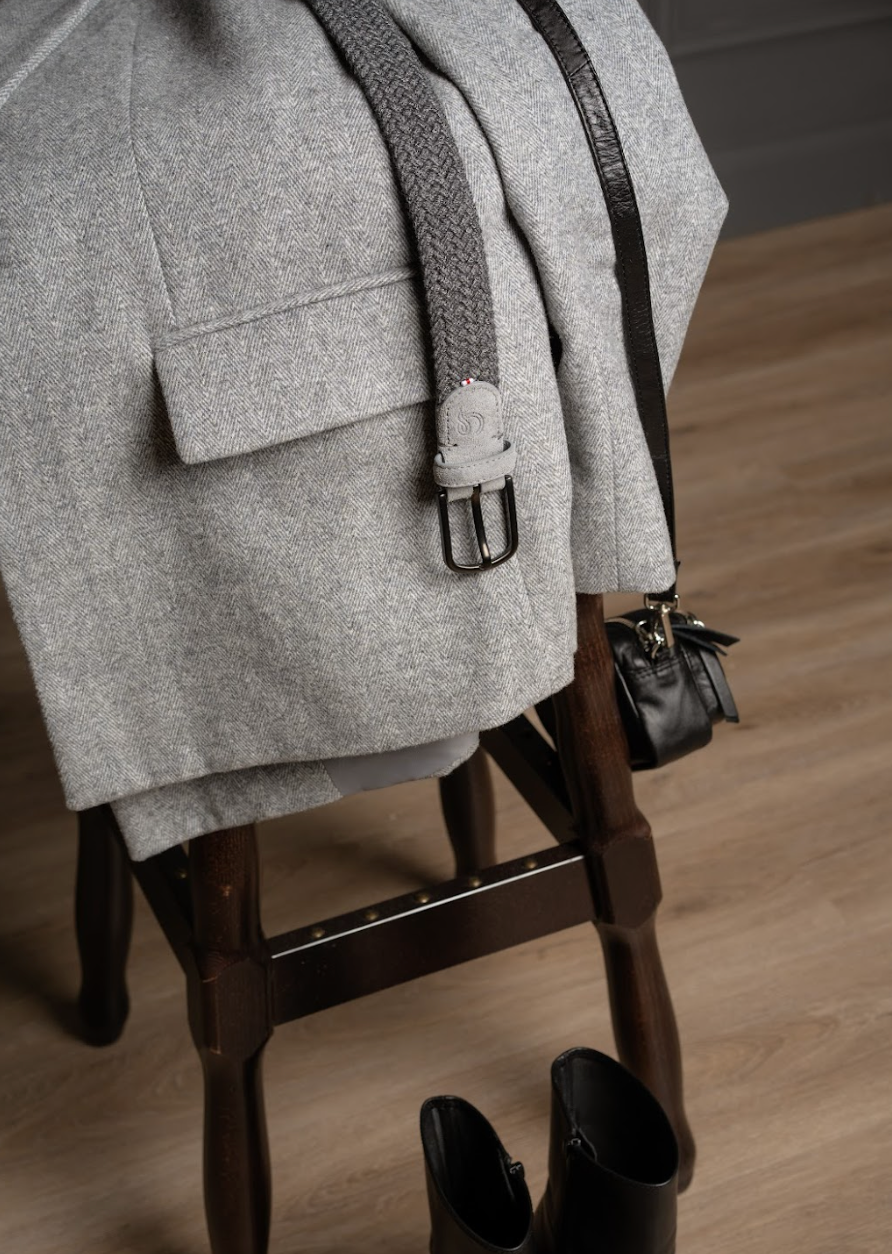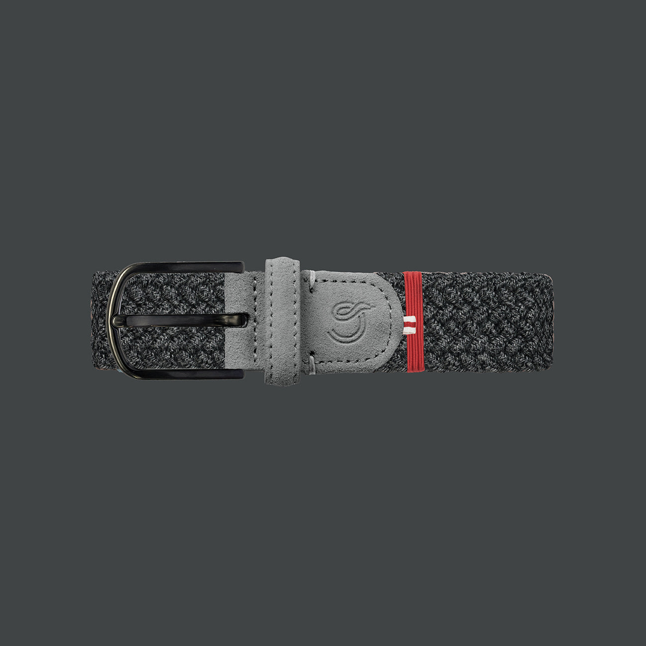The Galloway La Boucle belt, braided in dark grey featuring a cashmere touch and a black DLC-Coating buckle for optimal elegance and durability.
