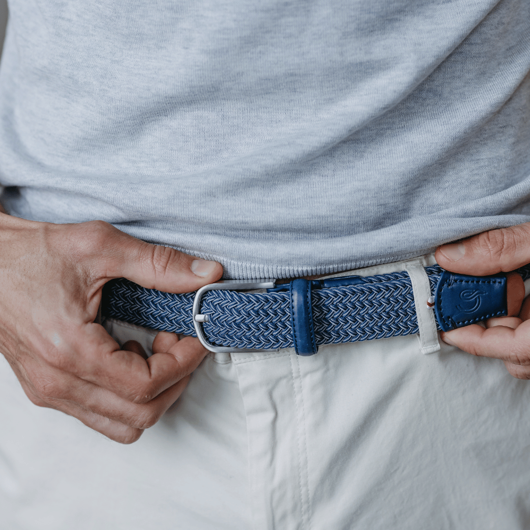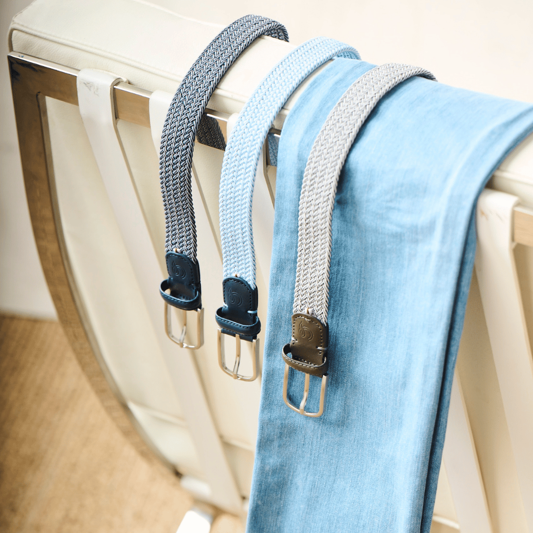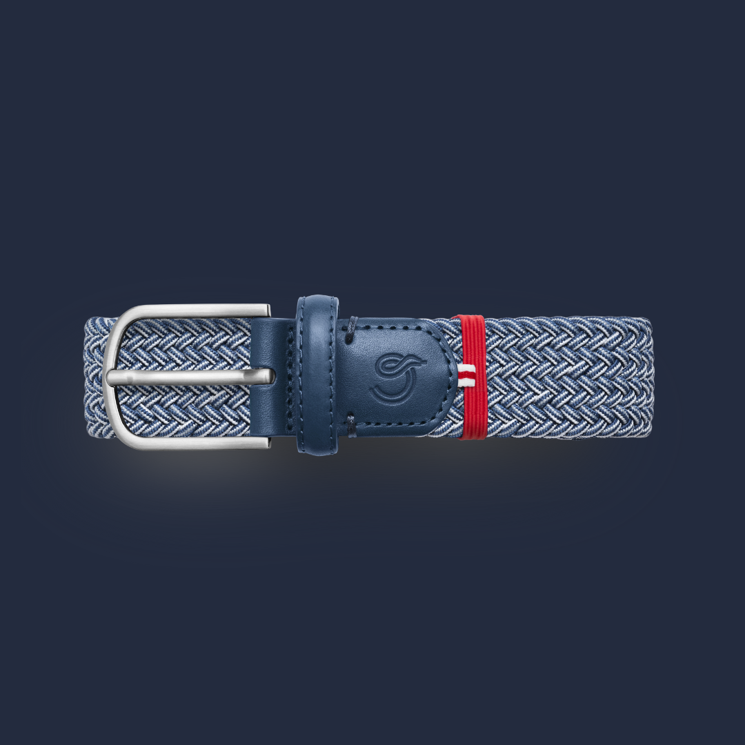 The Deauville La Boucle belt, braided in the colour Flecked blue.