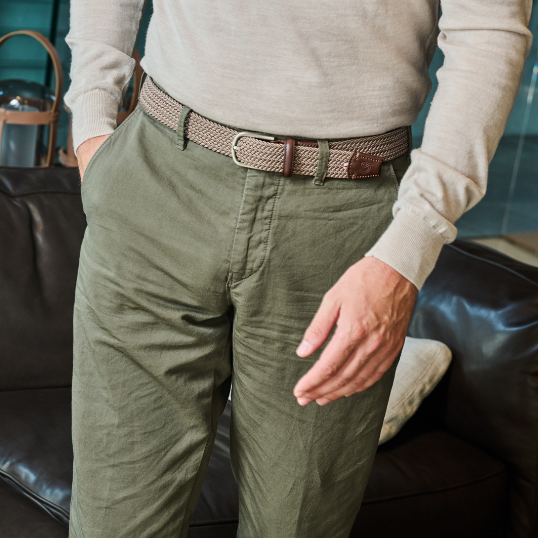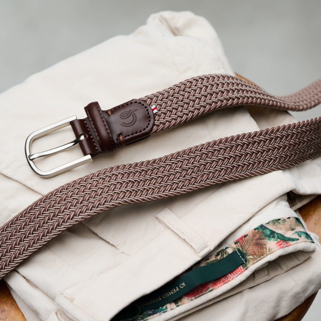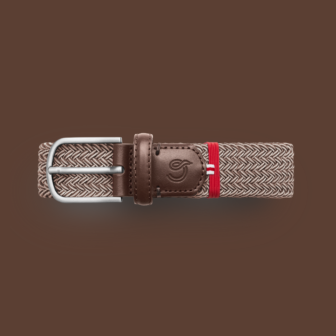 The Sylt La Boucle belt, braided in the colour Flecked brown.