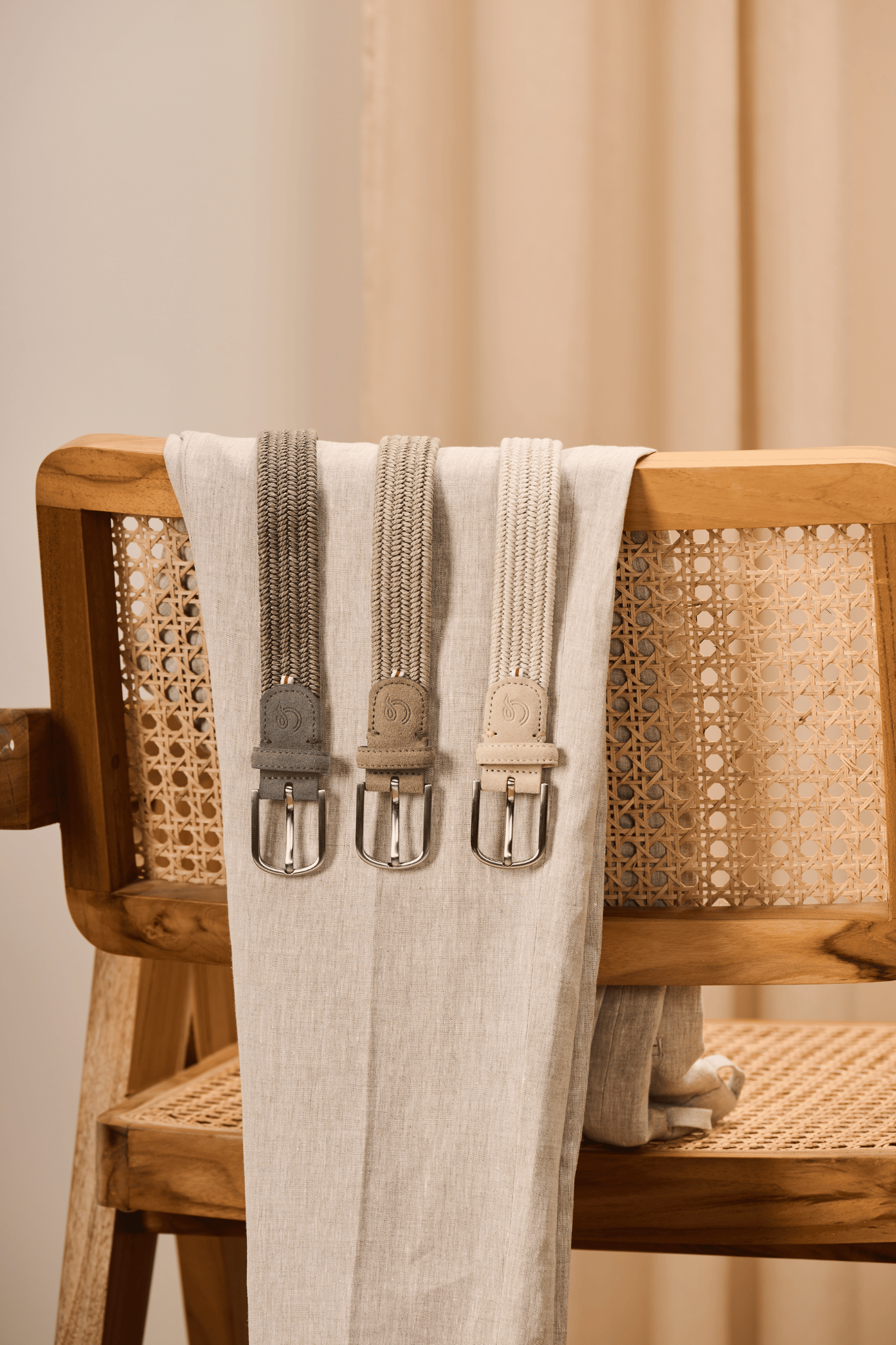 The Lazio belt, crafted from suede leather and braided in an elegant Taupe hue.
