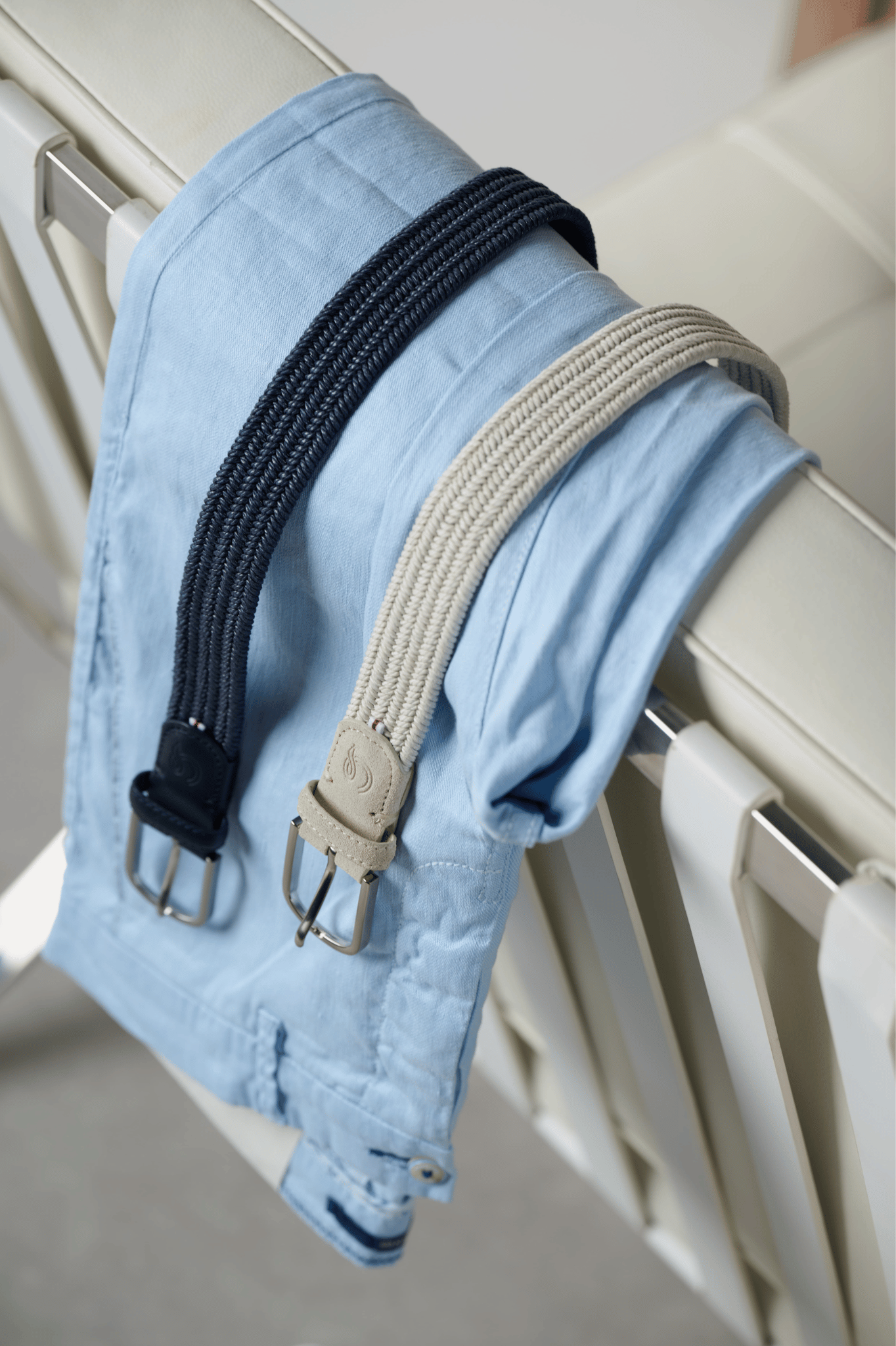 The Toscana belt, crafted from suede leather and braided in a sophisticated Lamb hue.