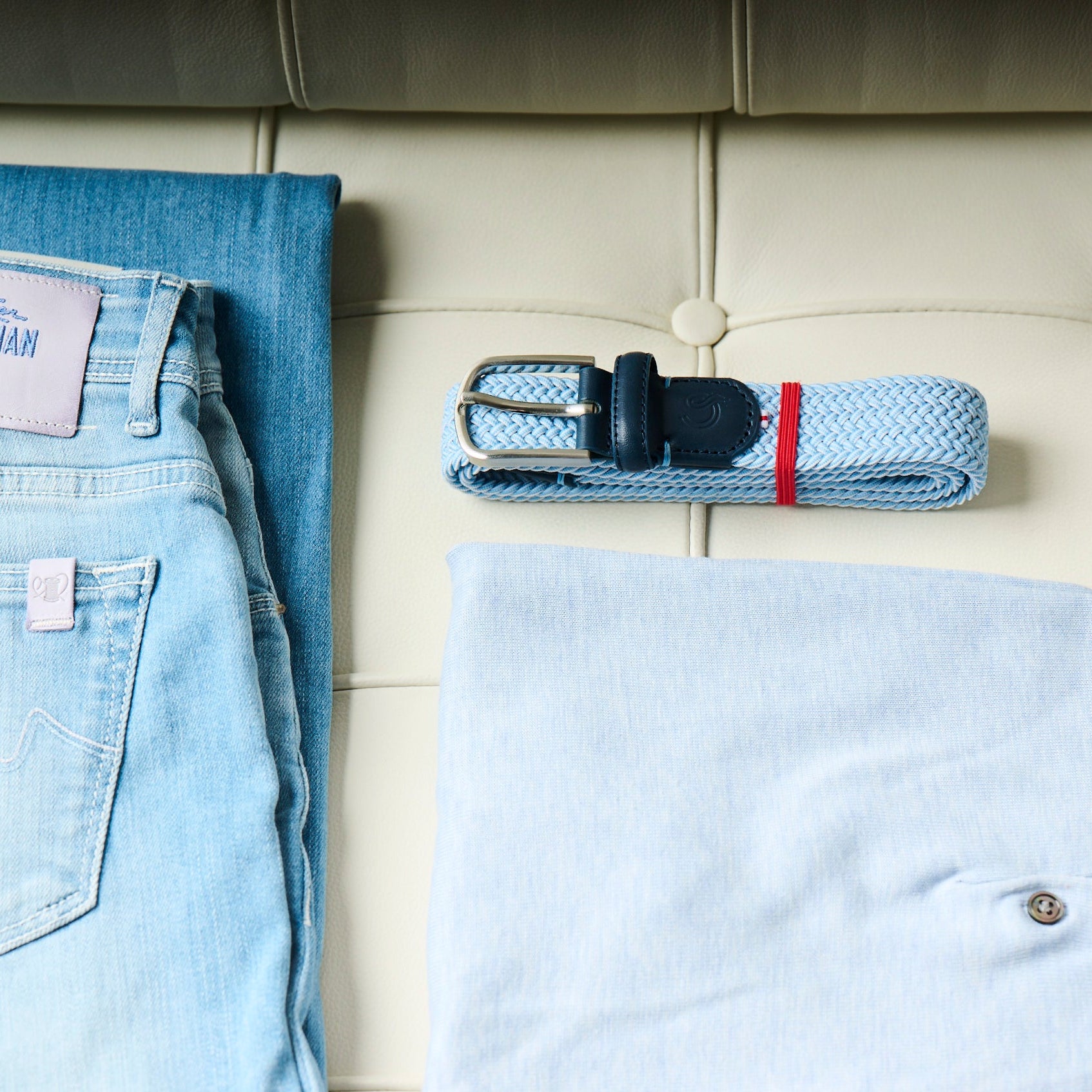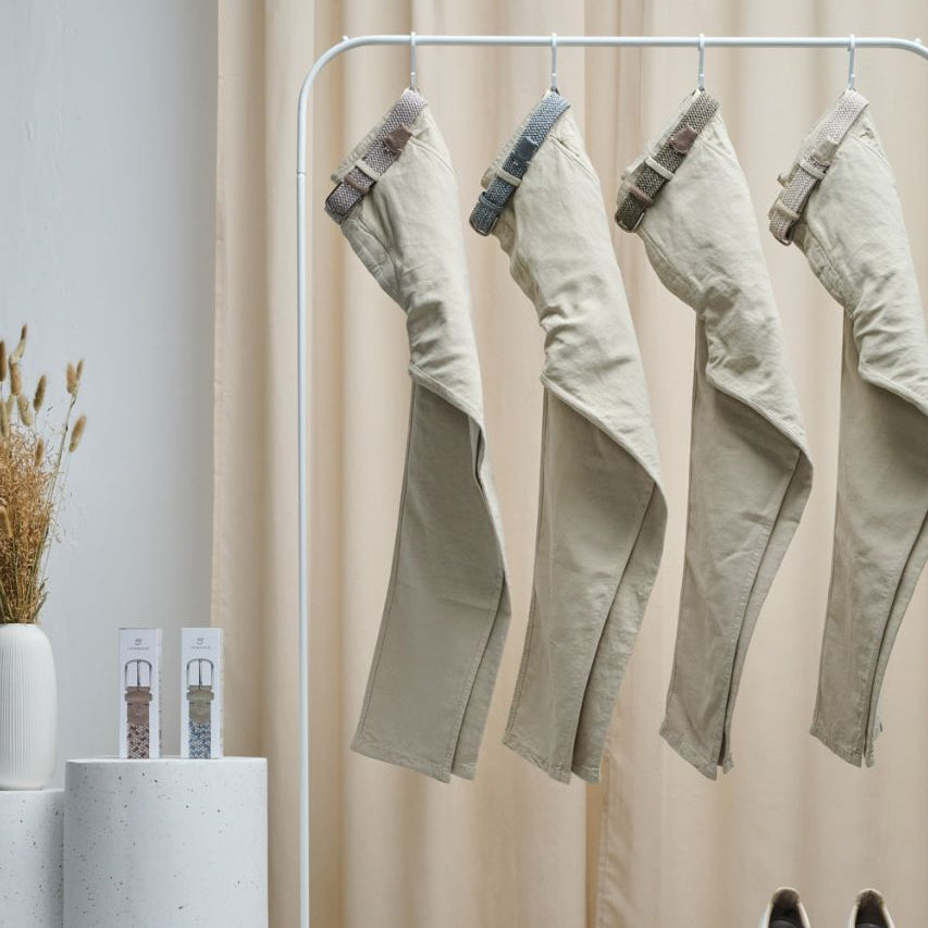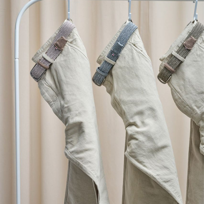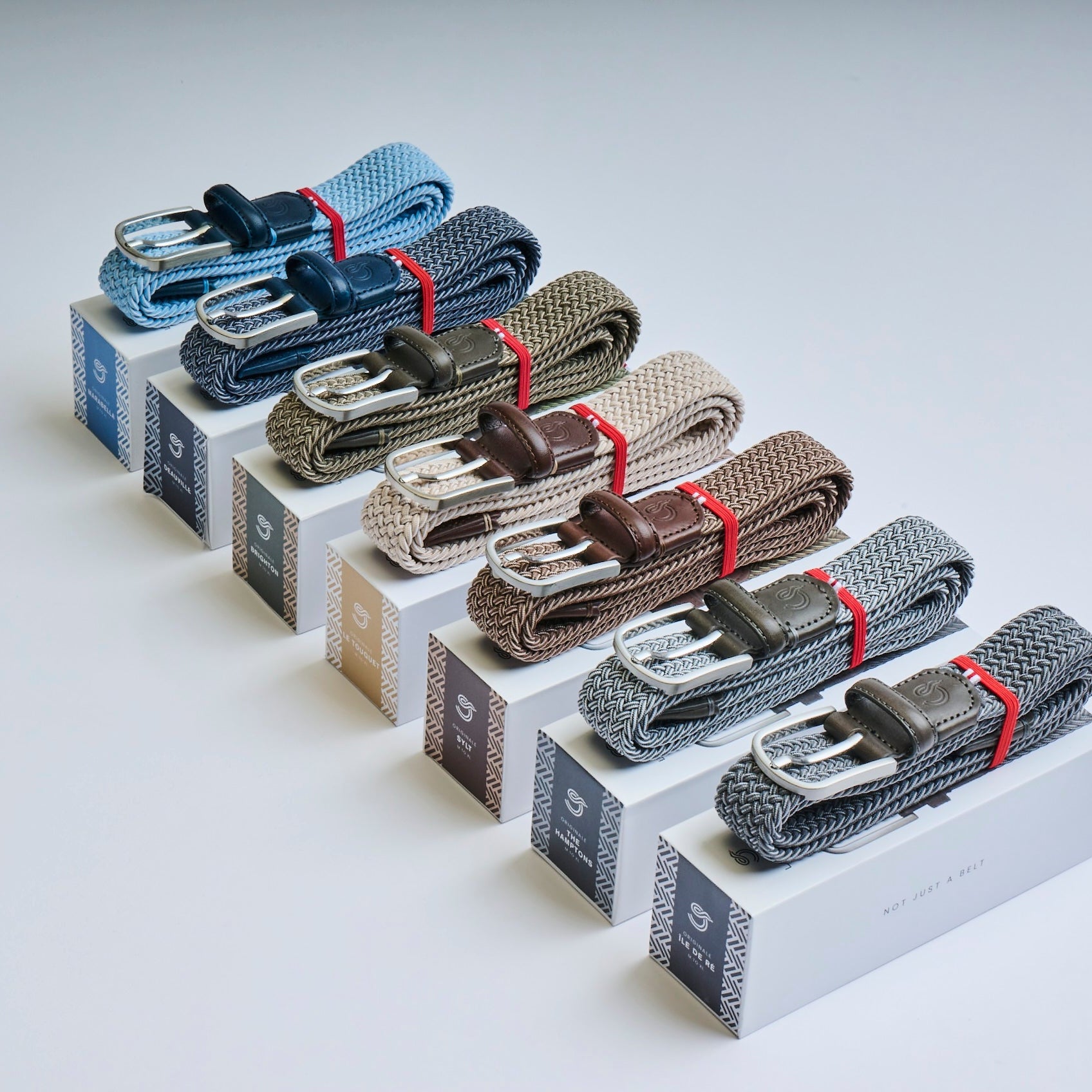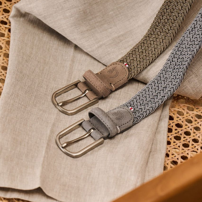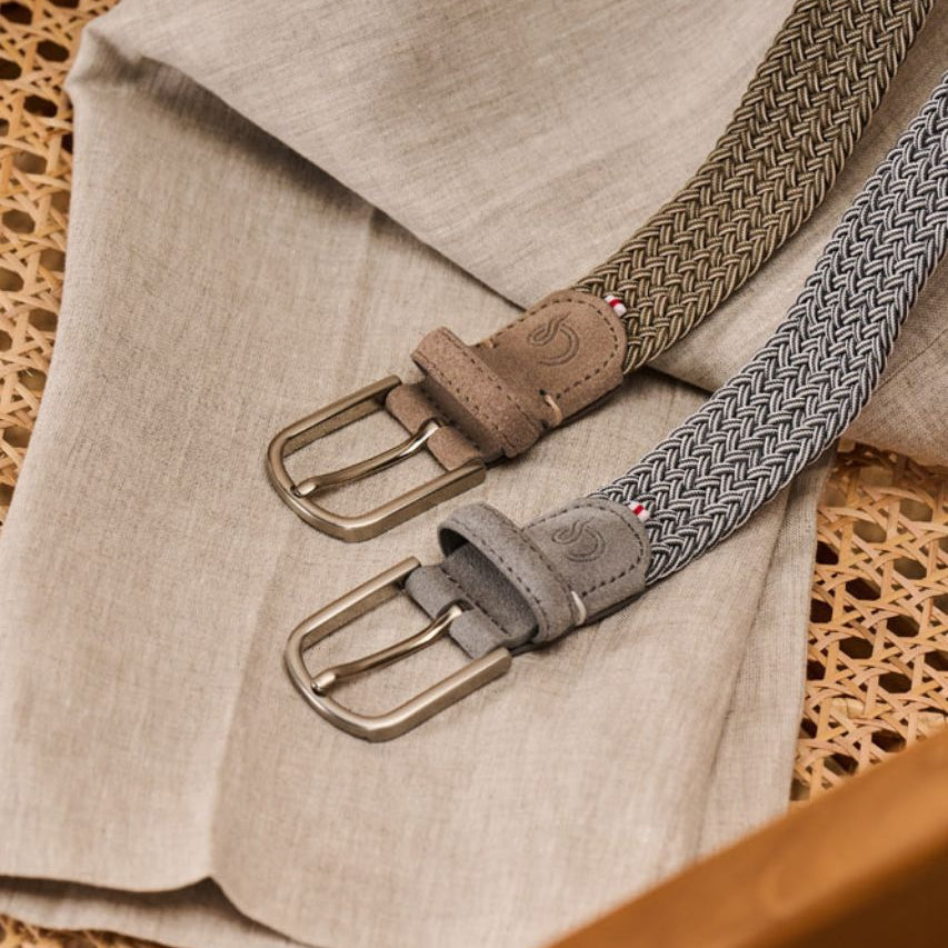 Nuestra segunda colección es más sutil. Al jugar con diferentes colores dentro del trenzado, la Colección Duo ofrece una ingeniosa ilusión óptica. Los colores se suavizan y te dan la oportunidad de combinar tu cinturón con la mayoría de tus conjuntos.