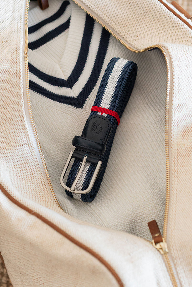 The Bristol, braided in dark blue and white.