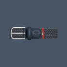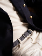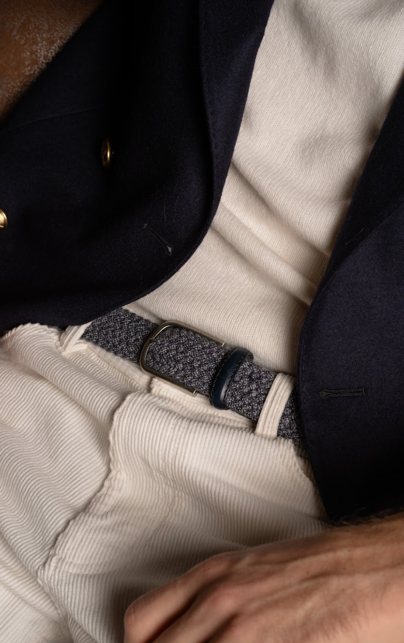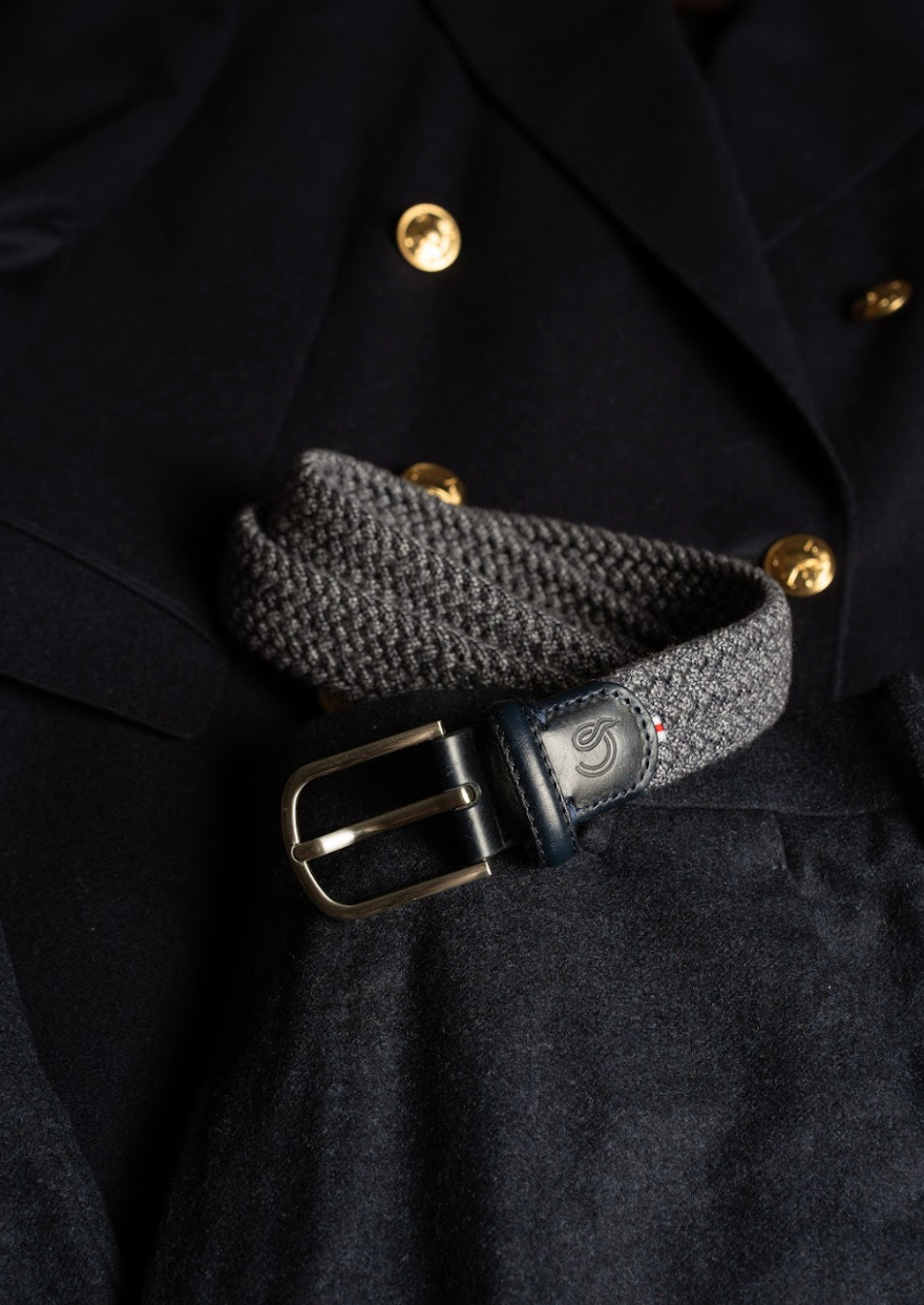 The Loch Ness La Boucle belt, braided in dark blue featuring a cashmere touch and a stainless steel buckle for optimal elegance and durability.