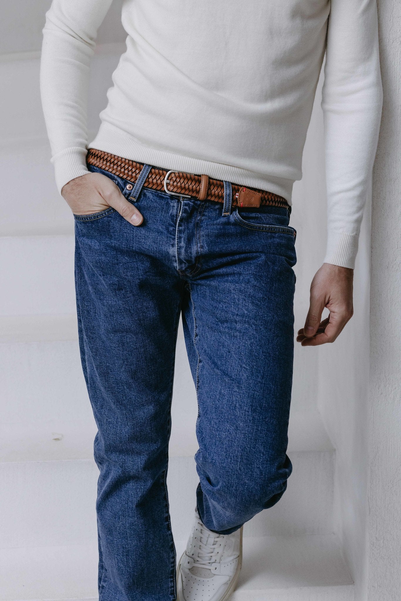 The Napoli La Boucle belt, elastic braided in leather, camel colour. Finished with vegetable tanned Italian leather. Stainless steel buckle for optimal strength and durability, and minimal risk of skin allergic reactions.